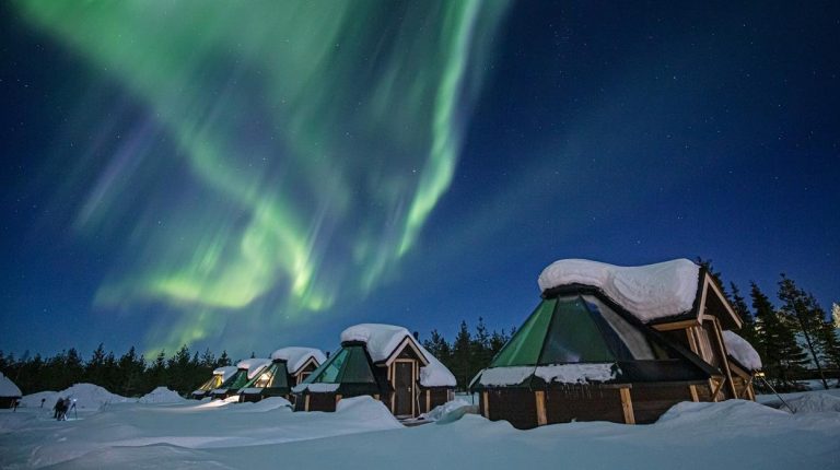 Located in the far north of Finland, 16km away from the centre of Levi and close to the ski resort (approx. 14km), the Northern Lights Village sits tucked away in its own piece of wilderness. Each cabin comes equipped with a half-glass roof with the twin or double beds situated underneath, providing the most incredible place from which to watch the sky for the Northern Lights. Be prepared for a sleepless night if they do appear, as from experience it is impossible to go to sleep when the Aurora dancing overhead. All cabins are in walking distance of the restaurant which serves local, Lappish delicacies. Facilities