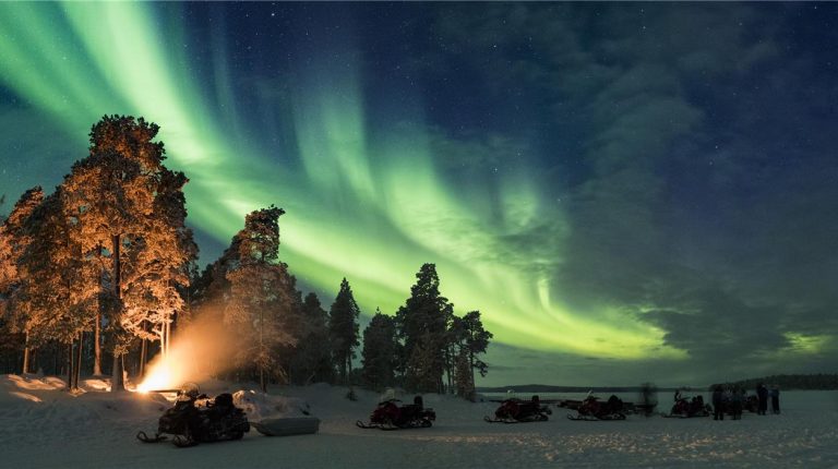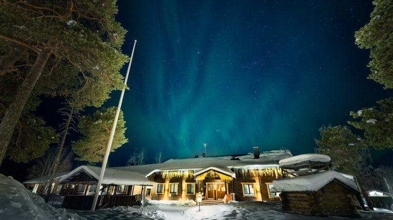 Nellim is a small hamlet, just a short walk from the edge of Lake Inari, one of the largest lakes in Finland. The lack of light pollution and this wilderness location provide both the dark skies required for Northern Lights hunting and the terrain needed for some fun activities.