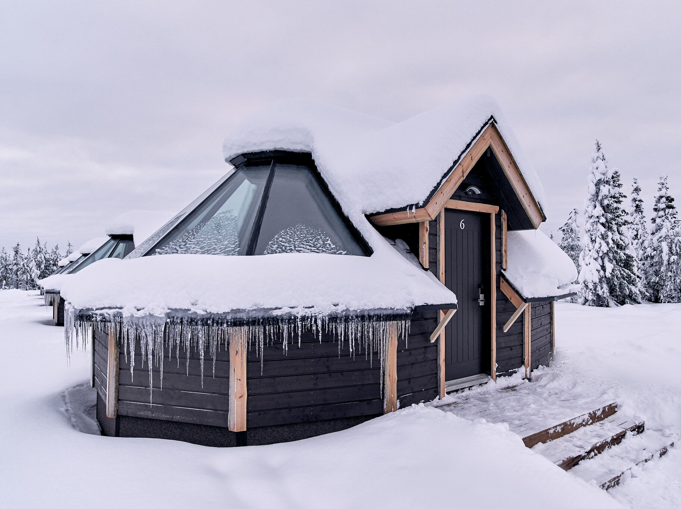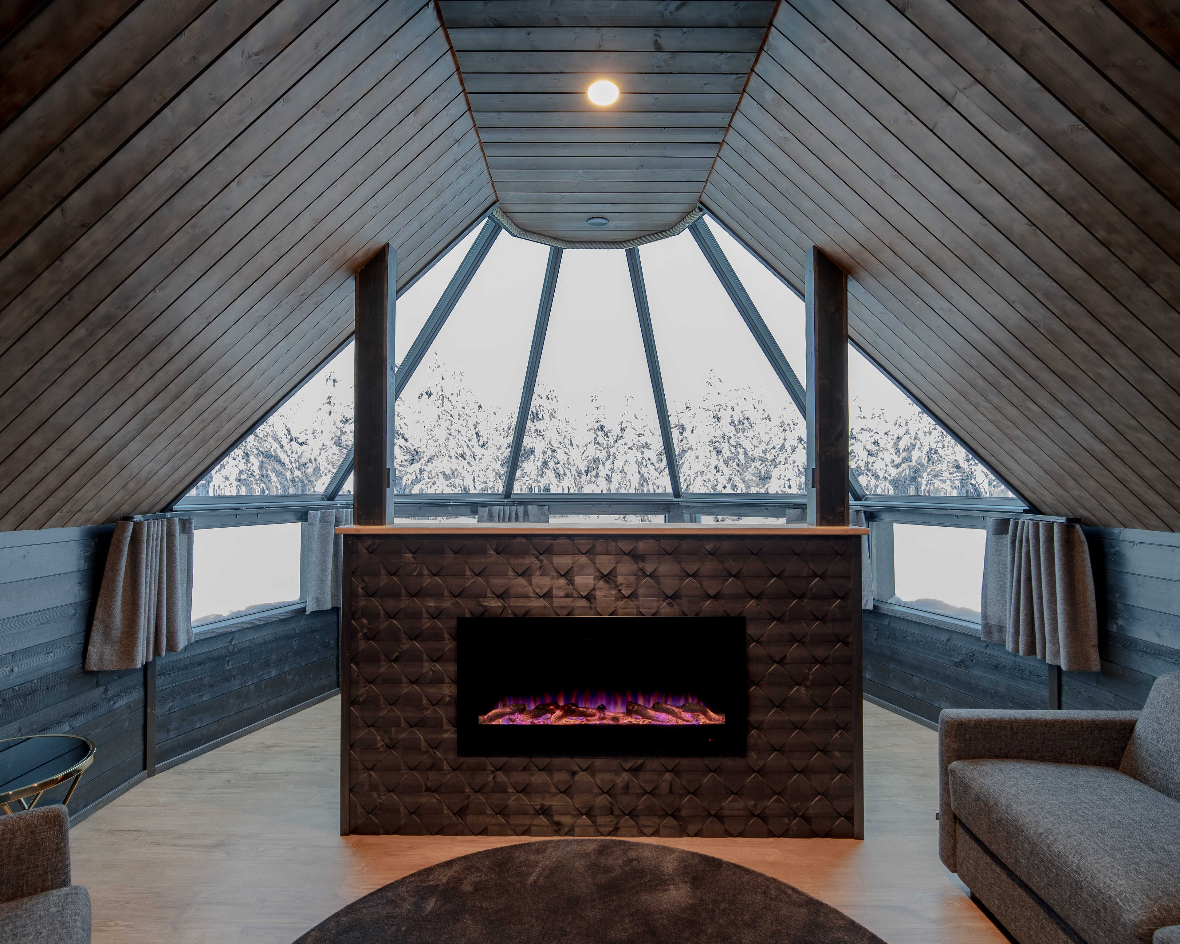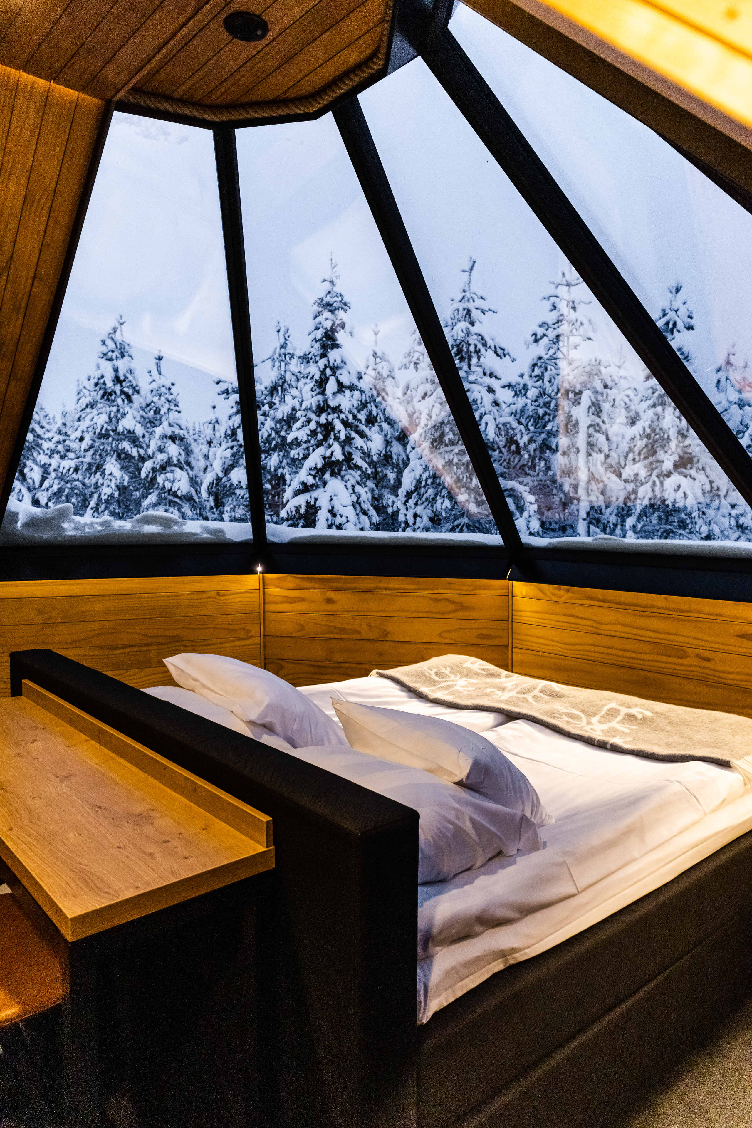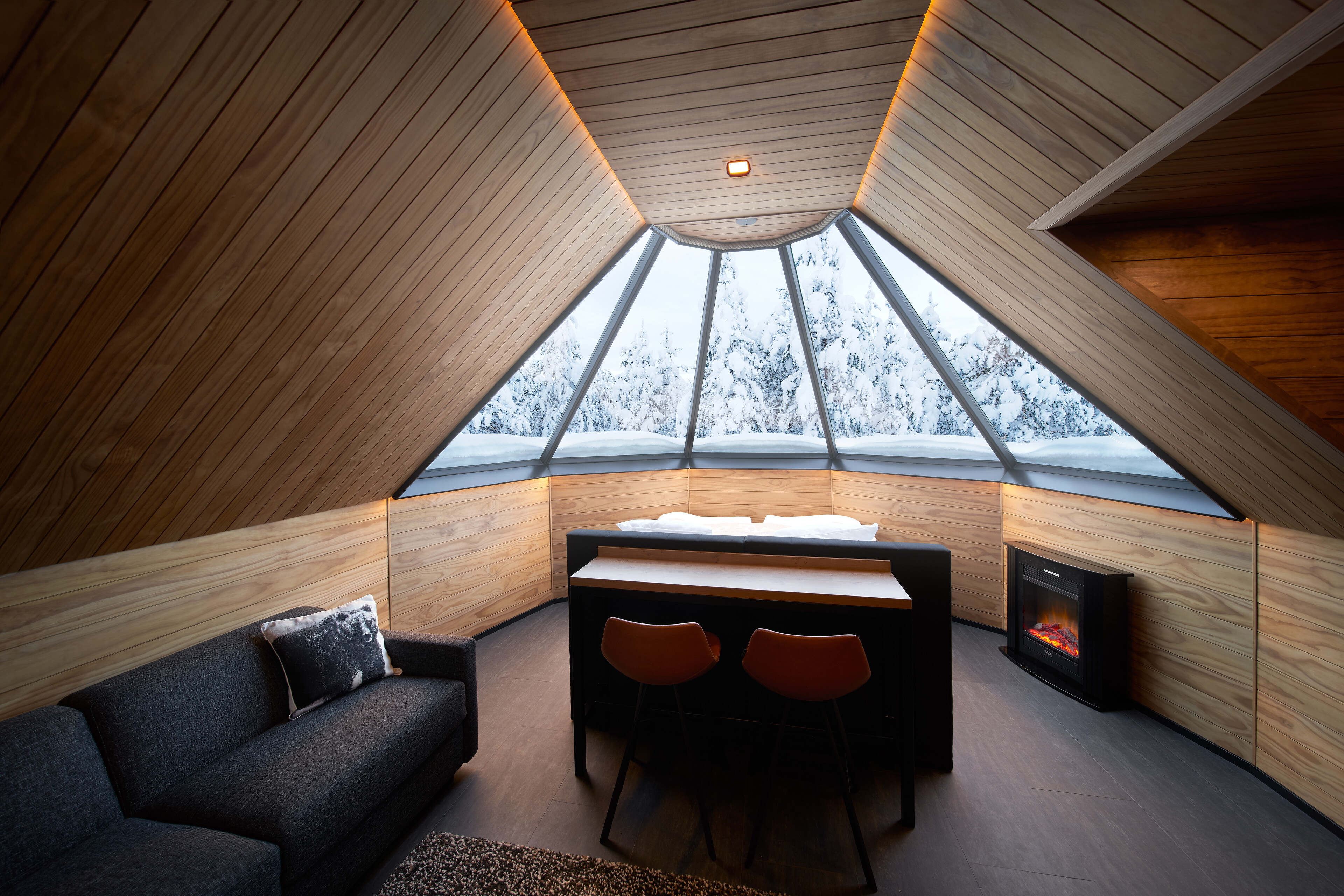 All Aurora Cabins face north and out into the wilderness to increase your chances of seeing the Northern Lights through the half-glass roof. The windows are also laser heated to melt the snow so that you have clear views at all times.