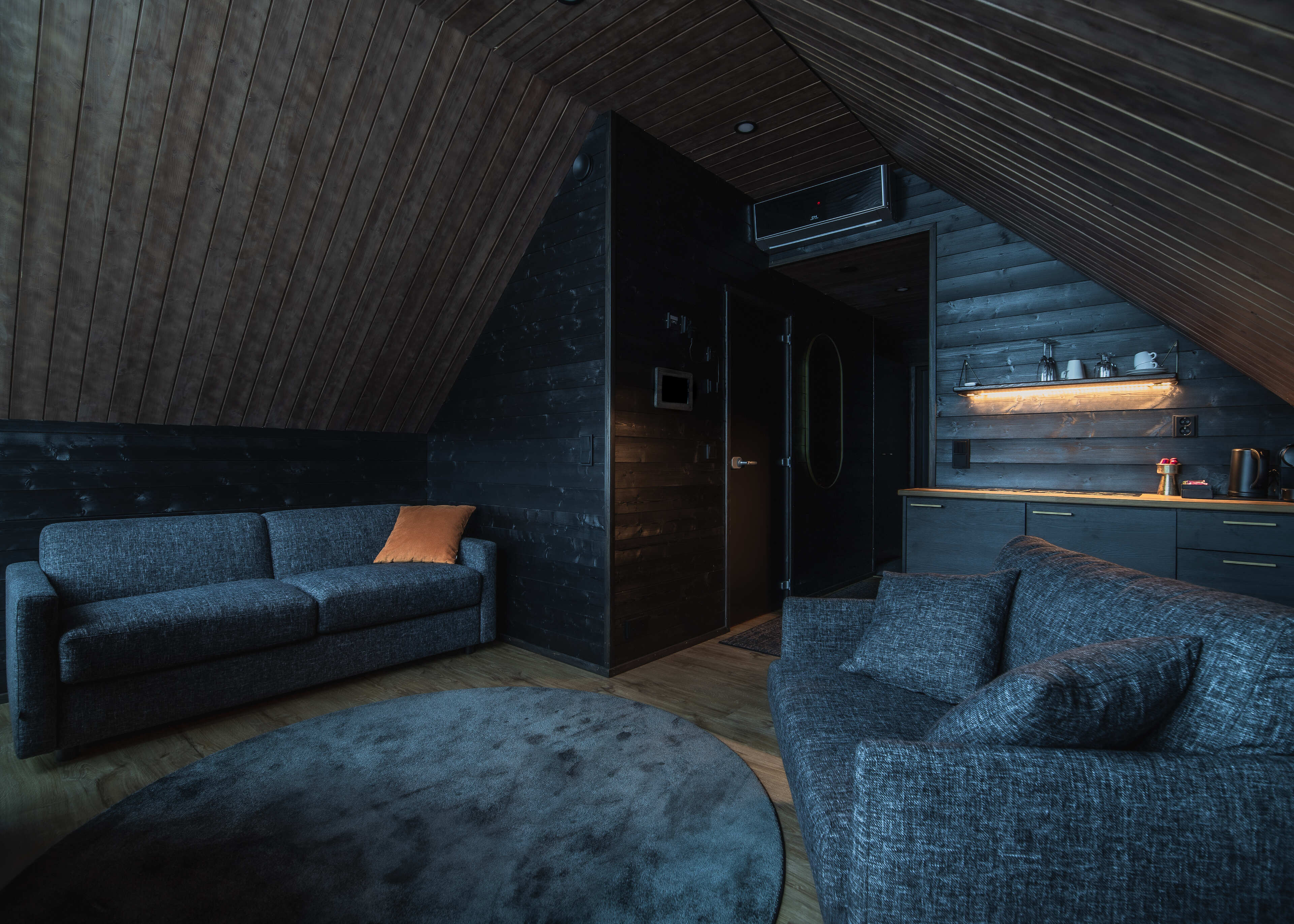 We however would not recommend more than 4 adults in one of the suites as it would be rather too cosy. The suites have a shower room and separate WC as well as their very own private sauna. An electric fireplace adds additional ambiance. You also have tea and coffee-making facilities, a hairdryer, minibar and unlimited WiFi.